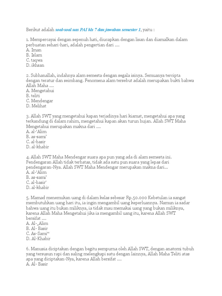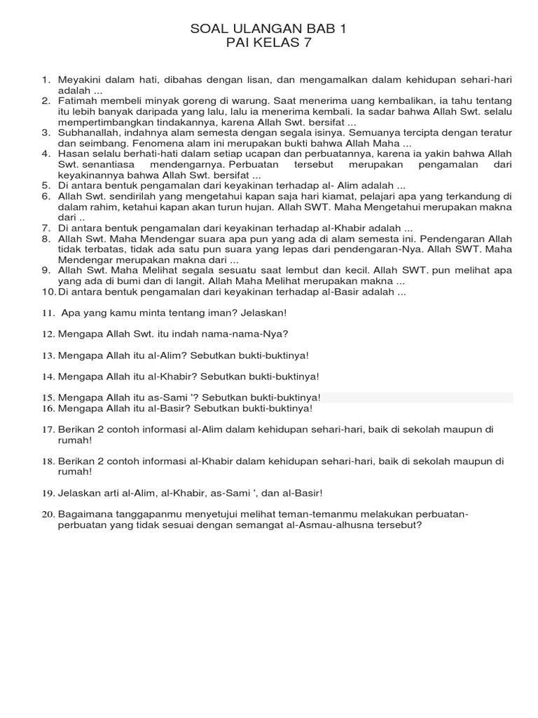 Ulangan Agama Kelas 7 Bab 1 2 from imgv2-2-f.scribdassets.com Maybe you would like to learn more about one of these? Check spelling or type a new query. We did not find results for: Bukti allah bersifat as sami.